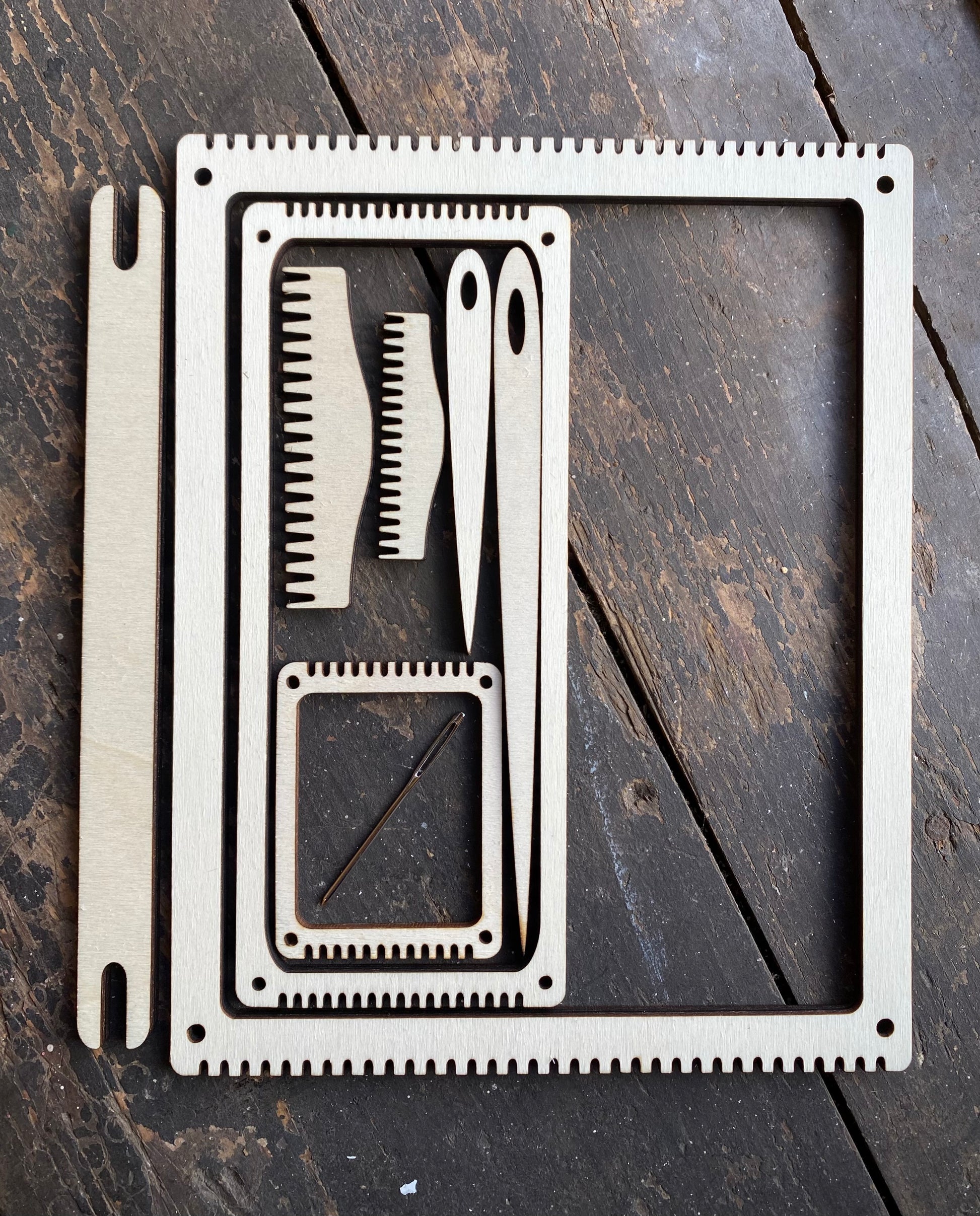 This set includes large, mini, and bookmark hand weaving looms, along with three 25g balls of Jameson & Smith Shetland wool, Two different sized wooden needles, one tapestry needle, two different weaving combs and a shuttle. These looms allow you to create beautiful textiles while the high-quality wool adds warmth and durability to your creations. Perfect for aspiring weavers and experts alike.
